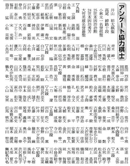 如果中国棋界发起这样的投票活动,不知入选十大好棋的会是哪十位棋手下出的哪十步呢? 参与此项活动的200位日本职业棋手名单